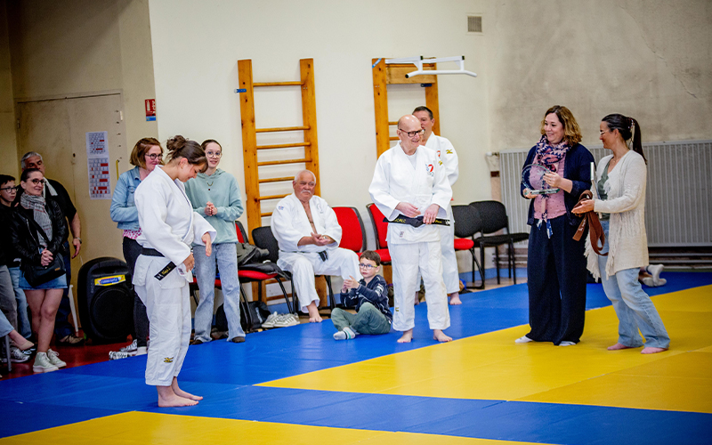Dans une ambiance à la fois solennelle et chaleureuse, le dojo s’est transformé en lieu de mémoire et de reconnaissance. Sur les tatamis, les démonstrations se sont enchaînées, illustrant la technicité et l’engagement des judokas. En arrière-plan, les regards attentifs des élèves et des anciens témoignaient du profond attachement à ce club qui, au fil des années, est devenu bien plus qu’un simple lieu de pratique sportive.